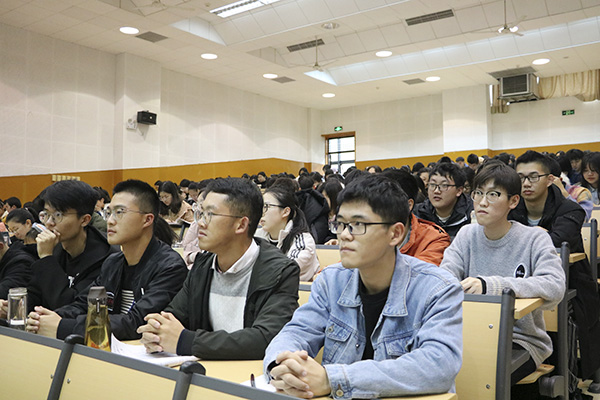 本网讯 11月12日下午,管理学院在沙河校区教一327举办“不忘初心、牢记使命”主题教育专题党课。副院长尚煜以《刻苦专研 筑牢根基 争做极具竞争力的新一代大学生》为主题开讲,院党委副书记李邦三主持,管理学院大一大二全体学生、大三学生党员300余人参与集中学习。