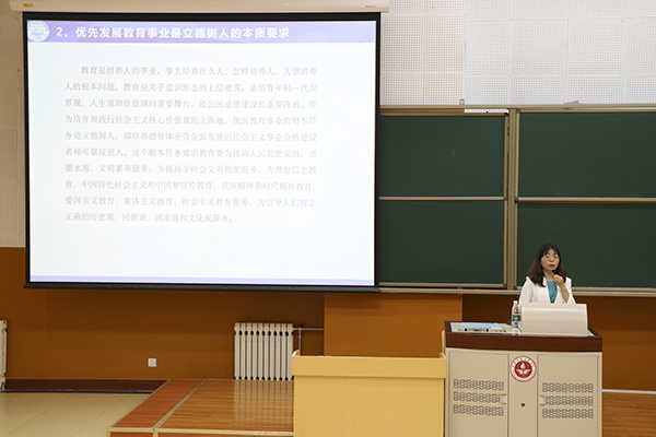 尚煜就“百年大计,教育为本”的教育理念,具体解析了习近平总书记新时代教育改革 “九个坚持”的内涵,阐述了大学教育的本质。明确优先发展教育事业是建设教育强国的必然要求,是建设人才强国的必要前提,是提升我国综合国力与国际竞争力的重要战略举措,是立德树人的本质要求,是改善民生的必然选择。他指出高等教育要完成“四个服务”的使命,呼吁在座同学为国民素质提高继续努力。