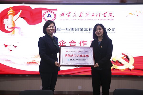 双方达成一致意见,签订校企合作协议,并举行互赠牌匾仪式。矿大(北京)力建学院获赠“校企合作人才培养基地”,公司获赠“实践实习共建基地”。