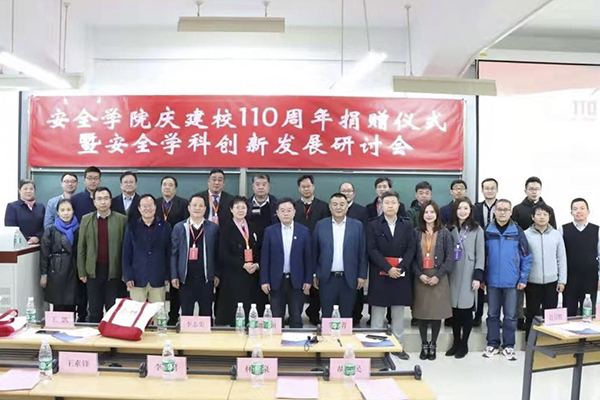 校庆日下午,安全学院庆建校110周年捐赠仪式暨安全学科创新发展研讨会隆重举行。各捐赠企业代表,学院校友,学院领导班子成员和师生代表参加了大会。捐赠仪式由安全学院院长朱红青主持,党委书记王凯接受了捐赠,并为捐赠单位颁发捐赠证书。北京达飞安全技术研究院向学院捐赠10万元;深圳市中电数通智慧安全科技股份有限公司共向学院捐赠50万元;航天康达(北京)科技发展有限公司共向学院捐赠30万元,捐赠款项全部用于“双一流”学科建设和人才培养。