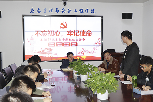 本网讯 为充分运用主题教育成果,紧扣学习贯彻习近平新时代中国特色社会主义思想主线,聚焦“不忘初心、牢记使命”主题,围绕理论学习有收获、思想政治受洗礼、干事创业敢担当、为民服务解难题、清正廉洁作表率的目标,按照习近平总书记关于“四个对照”“四个找一找”的要求,11月11-20日,应急管理与安全工程学院5个教师党支部和17个学生党支部相继召开“不忘初心、牢记使命”专题组织生活会暨民主评议党员工作,院领导分别参加了22个党支部组织生活会并进行指导。