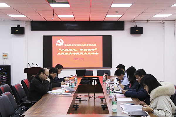 本网讯 12月2日下午,地球科学与测绘工程学院在综合楼249召开“不忘初心、牢记使命”主题教育专题民主生活会,副校长赵峰华出席会议。会议由学院党委书记李晶主持;院长代世峰,党委副书记杨向东,副院长董东林、崔凡和李军参加会议。