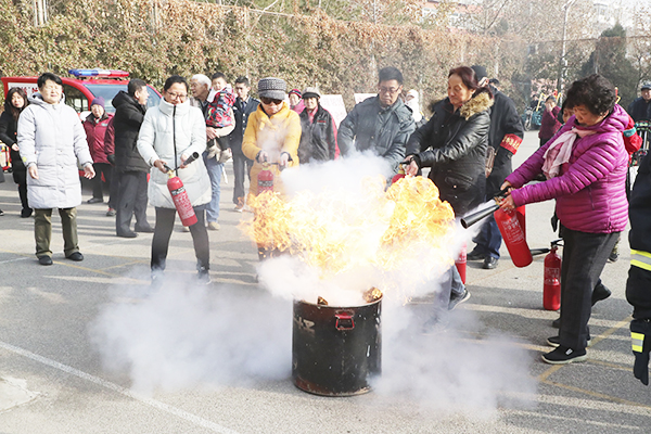 时值冬季,火灾风险增大,保卫处党支部全体党员为社区居民发放了消防安全小手册,播放了居民楼火灾事故案例,演示了学校微型消防站车辆的灭火效果,并向现场居民详细讲解了灭火器的使用方法。随后,保安员在现场点燃了油盆火,指导社区居民轮流上阵体验灭火器的使用,现场居民积极参与,对消防安全有了更深的感受,学到了知识,锻炼了技能。此次志愿服务活动,有效提高了矿大社区居民的自救互救能力和消防安全意识。